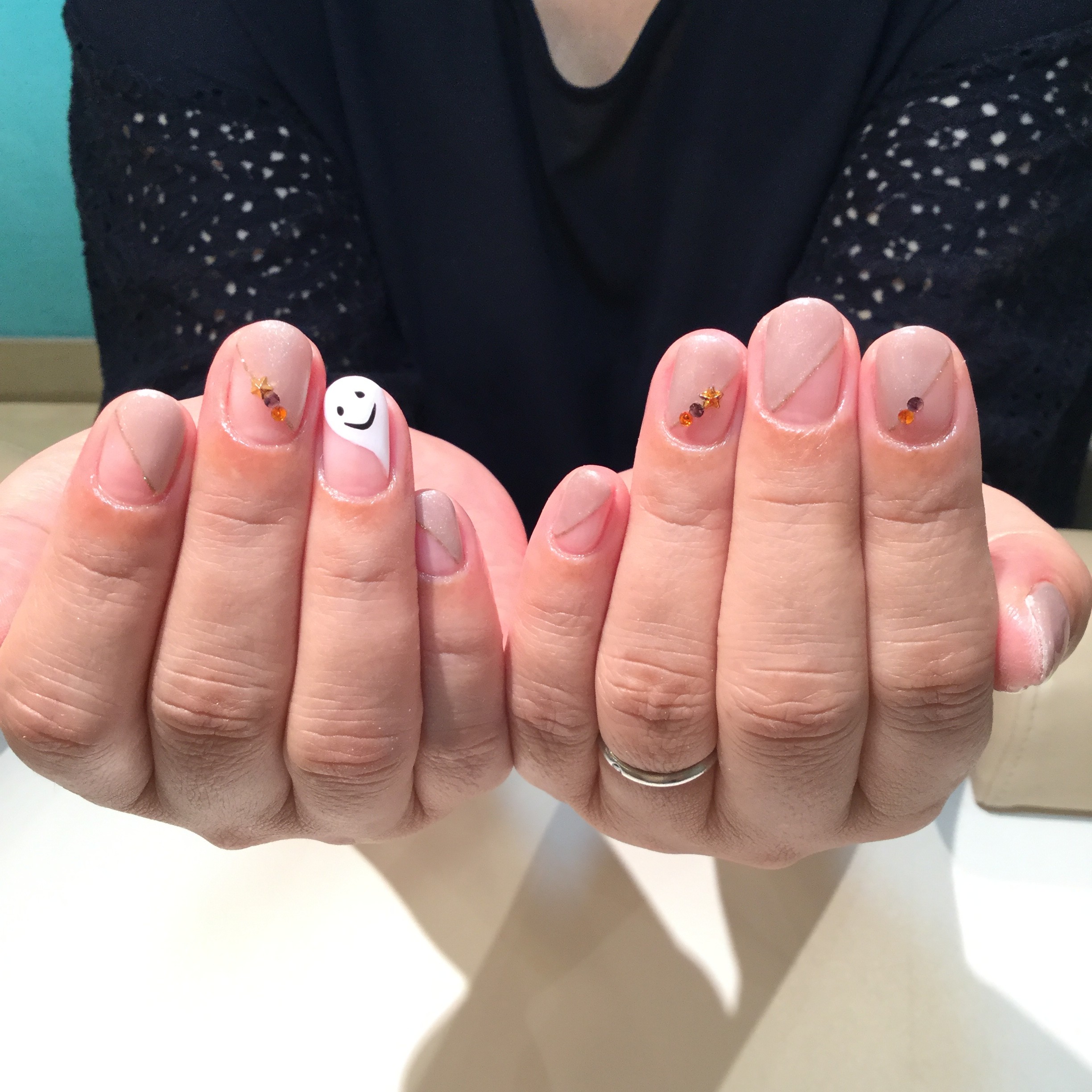 シンプルなフレンチに一本ハロウィンアート?