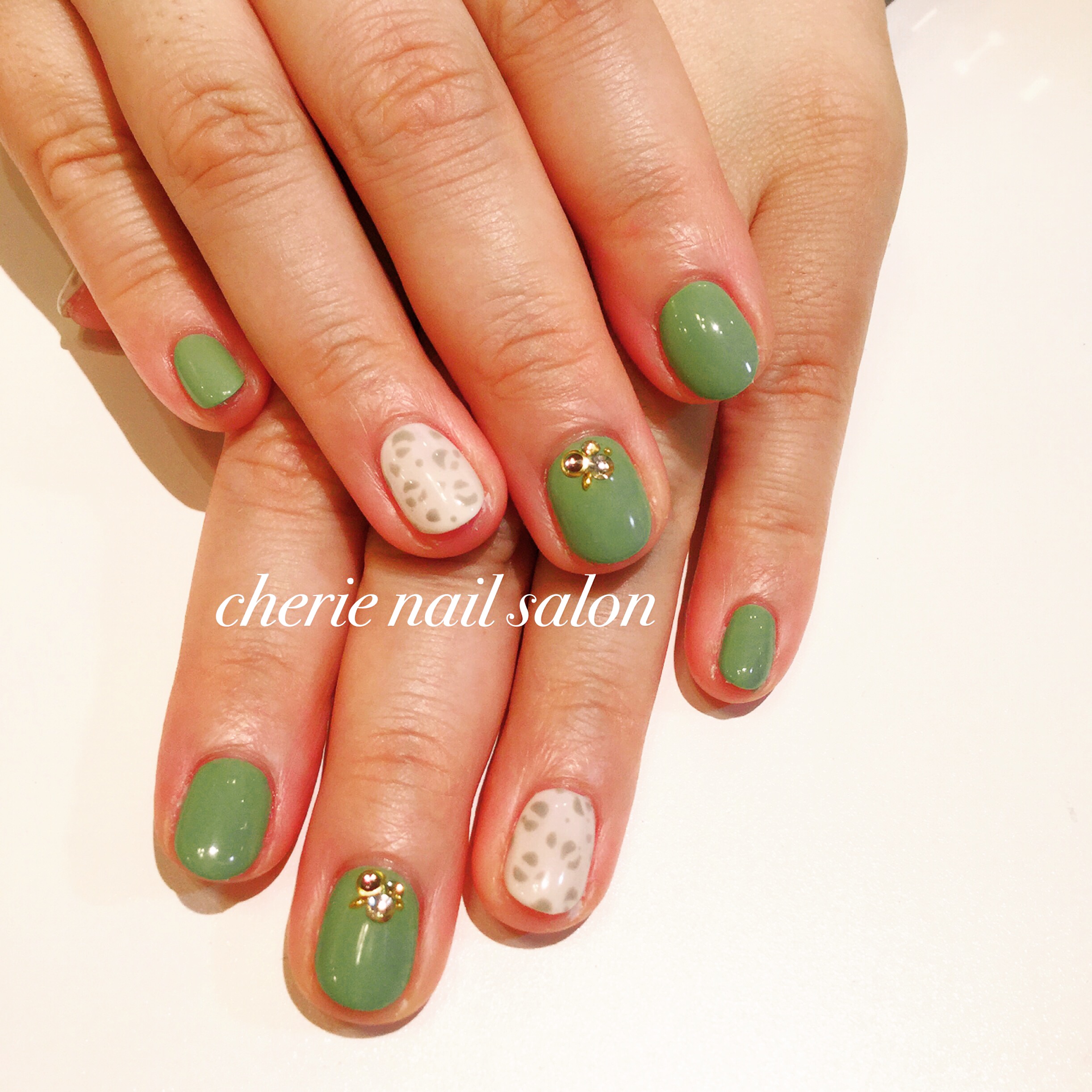 柔らかいカラーのレオパードとグリーンの配色がオシャレ☺︎