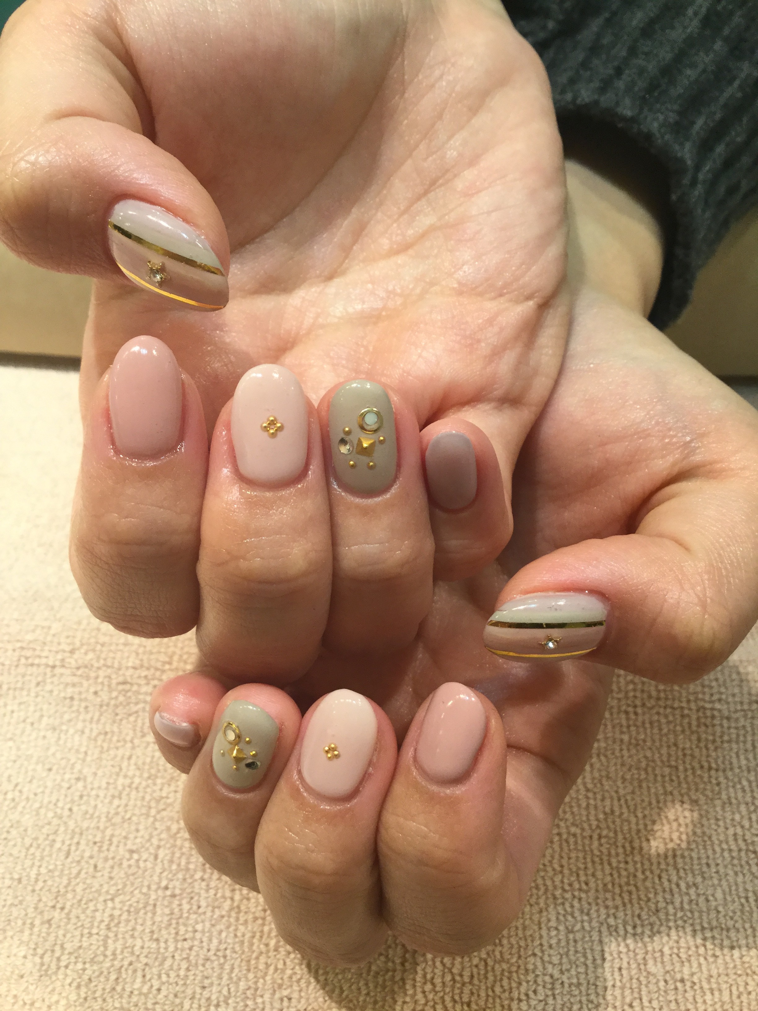 優しいカラートーンでストライプが上品に☺︎ ストーンとの組み合わせが絶妙ですね♡