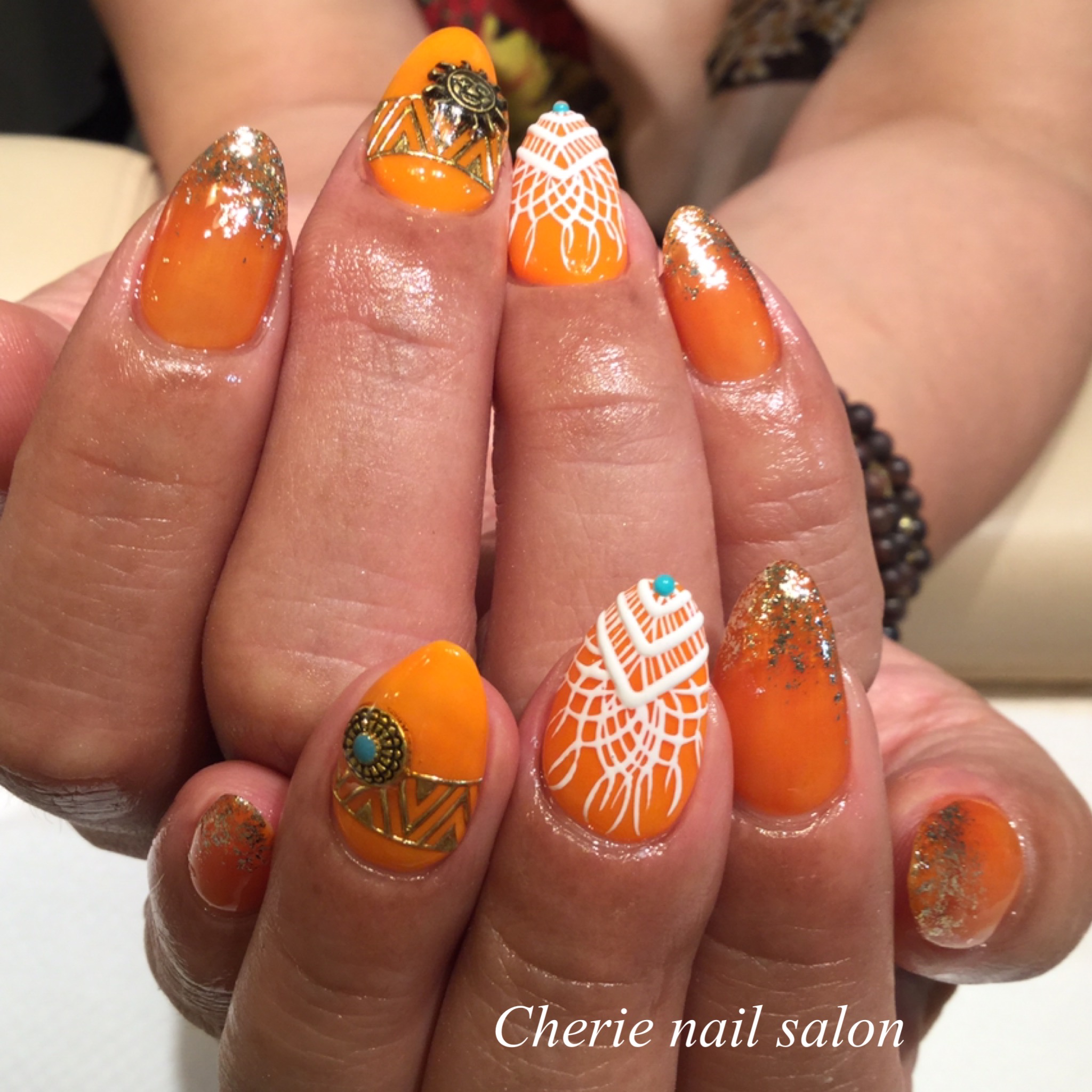 人気のクロッシェネイル☺︎ オレンジで真夏に!!