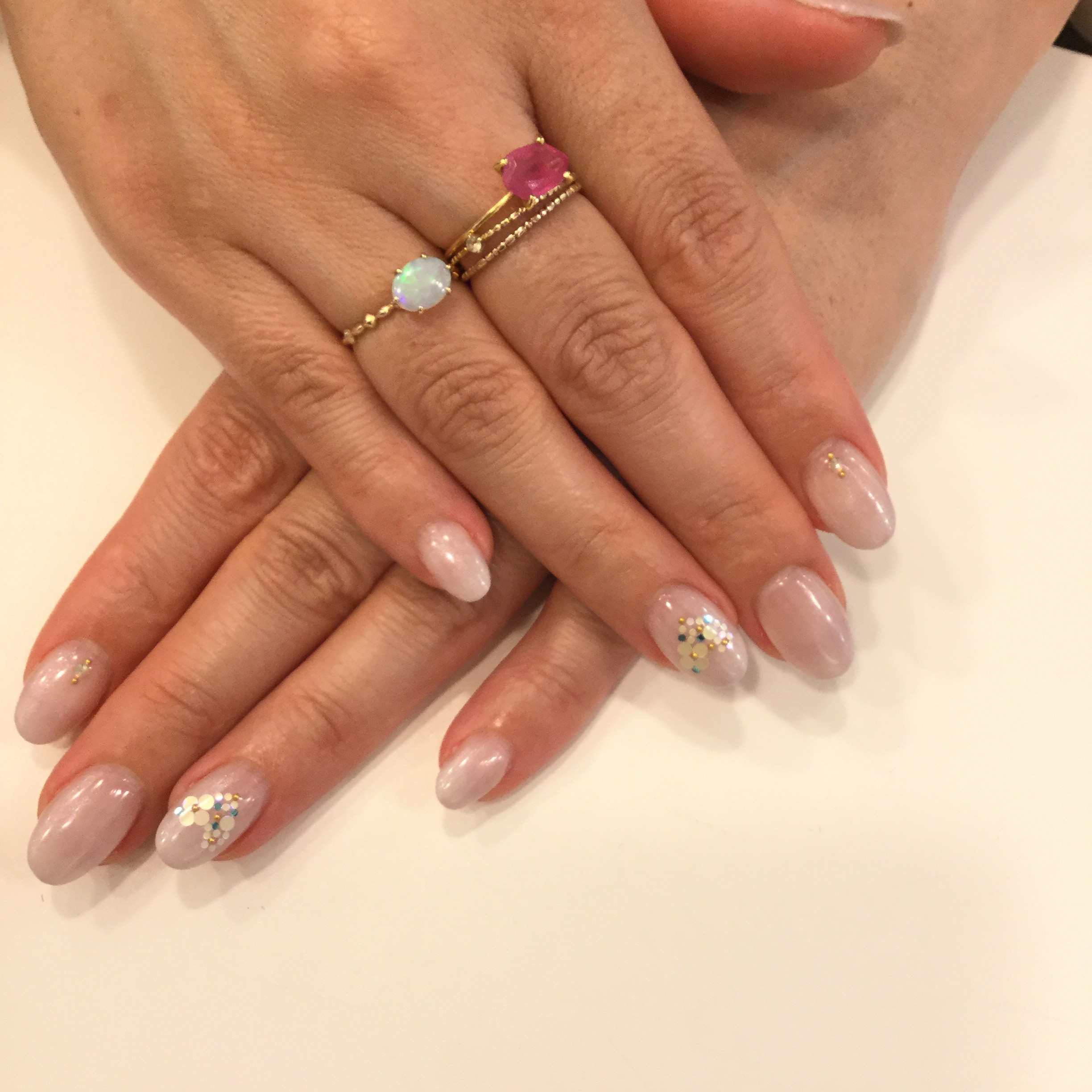 シンプルなグラデーションにホログラムとスタッズでハートに☺︎