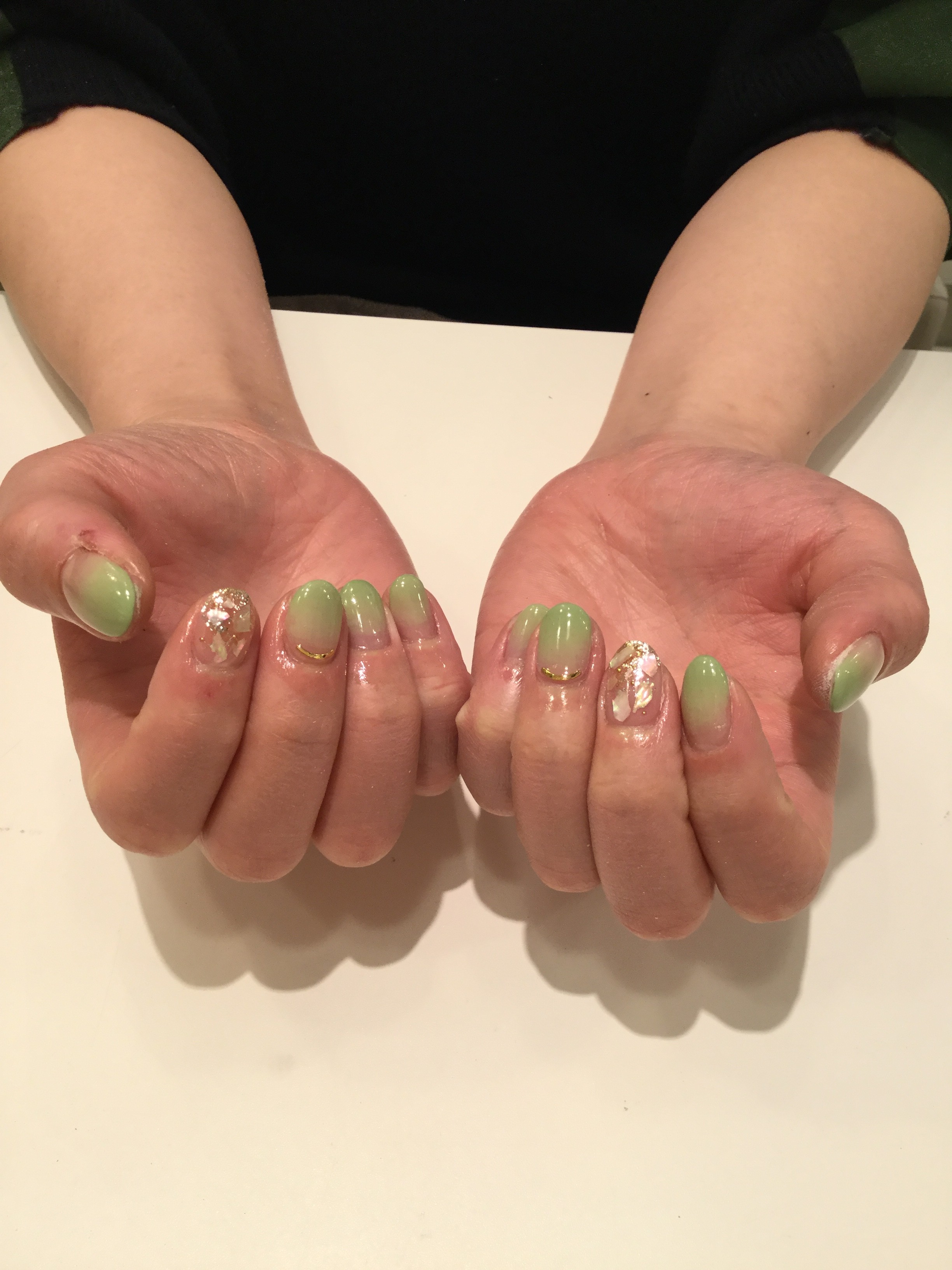柔らかいグリーンに大きめシェルが春先取りデザイン?