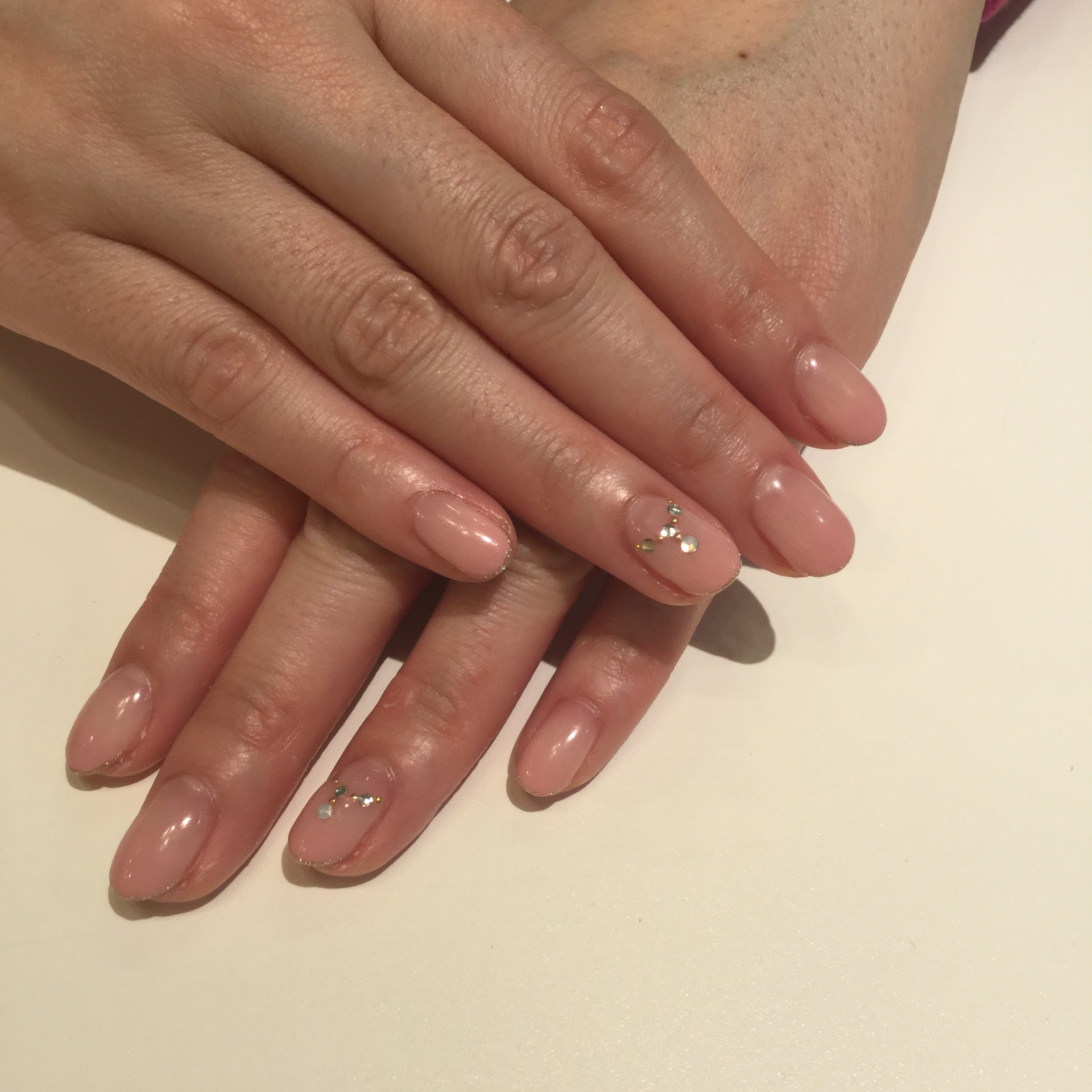 シンプルなヌーディーカラーのグラデーションにネックレス風のストーンがポイントです☺︎