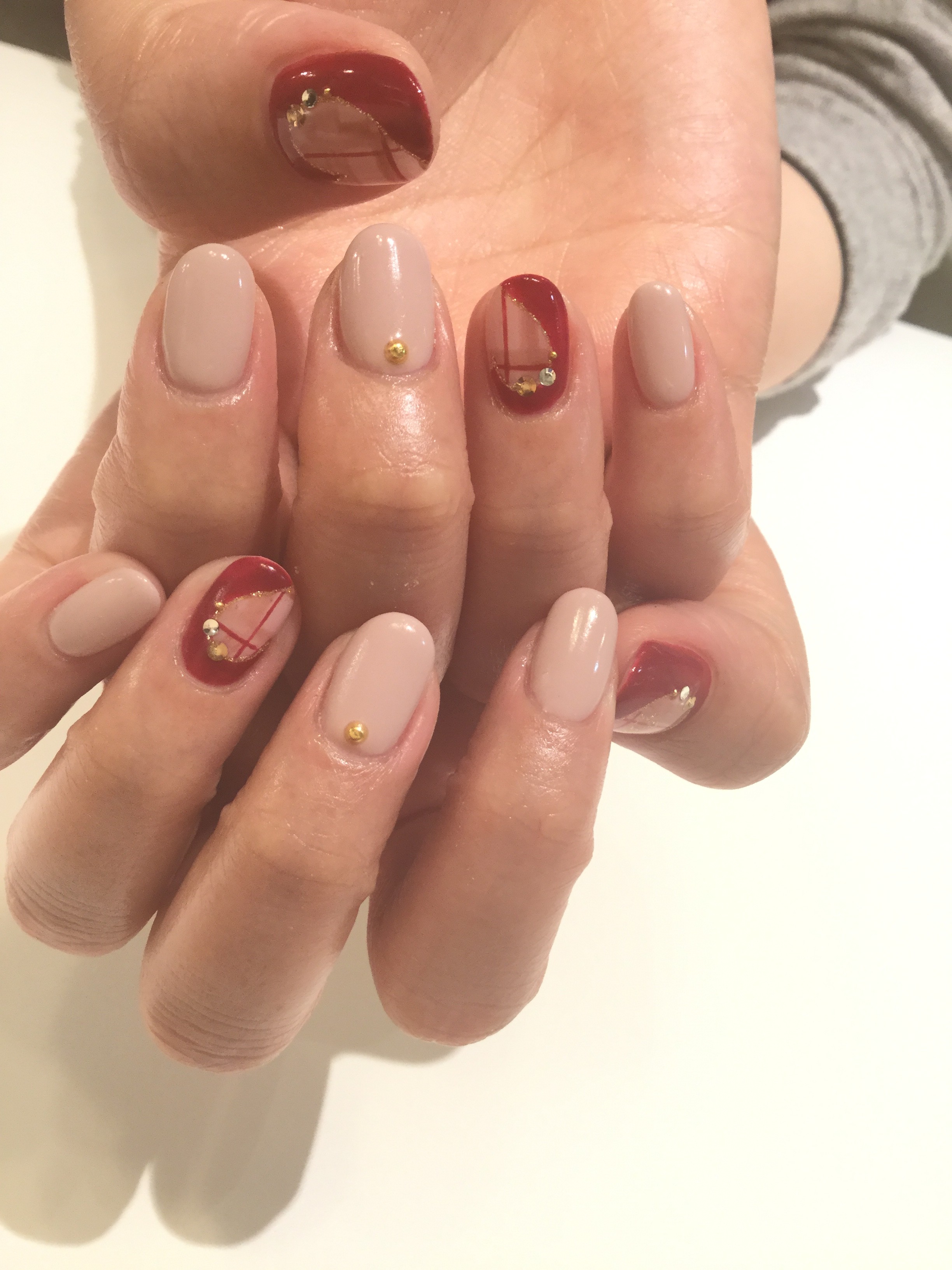 半分だけのハートの中がチェック柄で大人女子ネイルに変身です♪