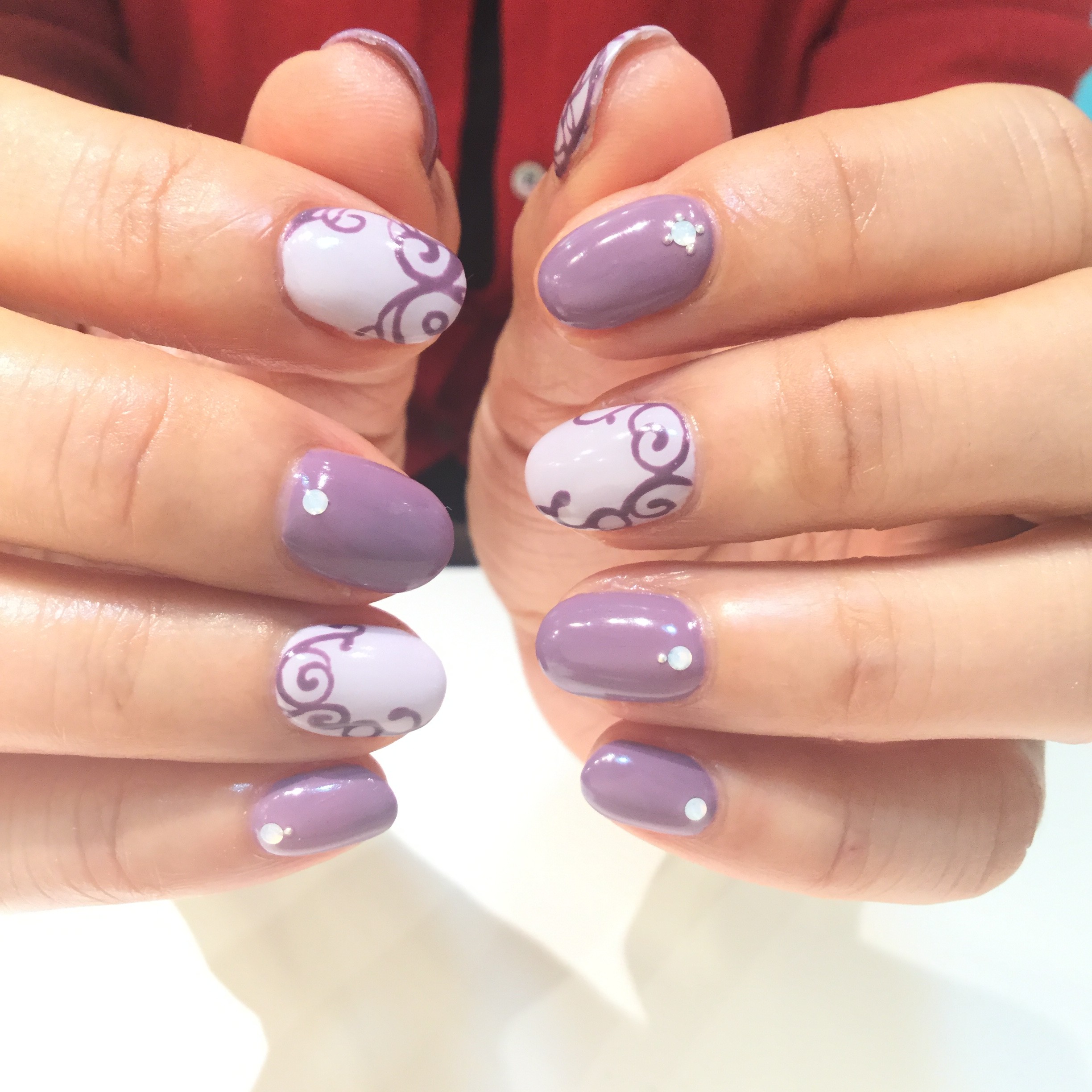パープルの濃淡で上品ネイルに☺︎ くるりんと描いたデザインがス・テ・キ!!