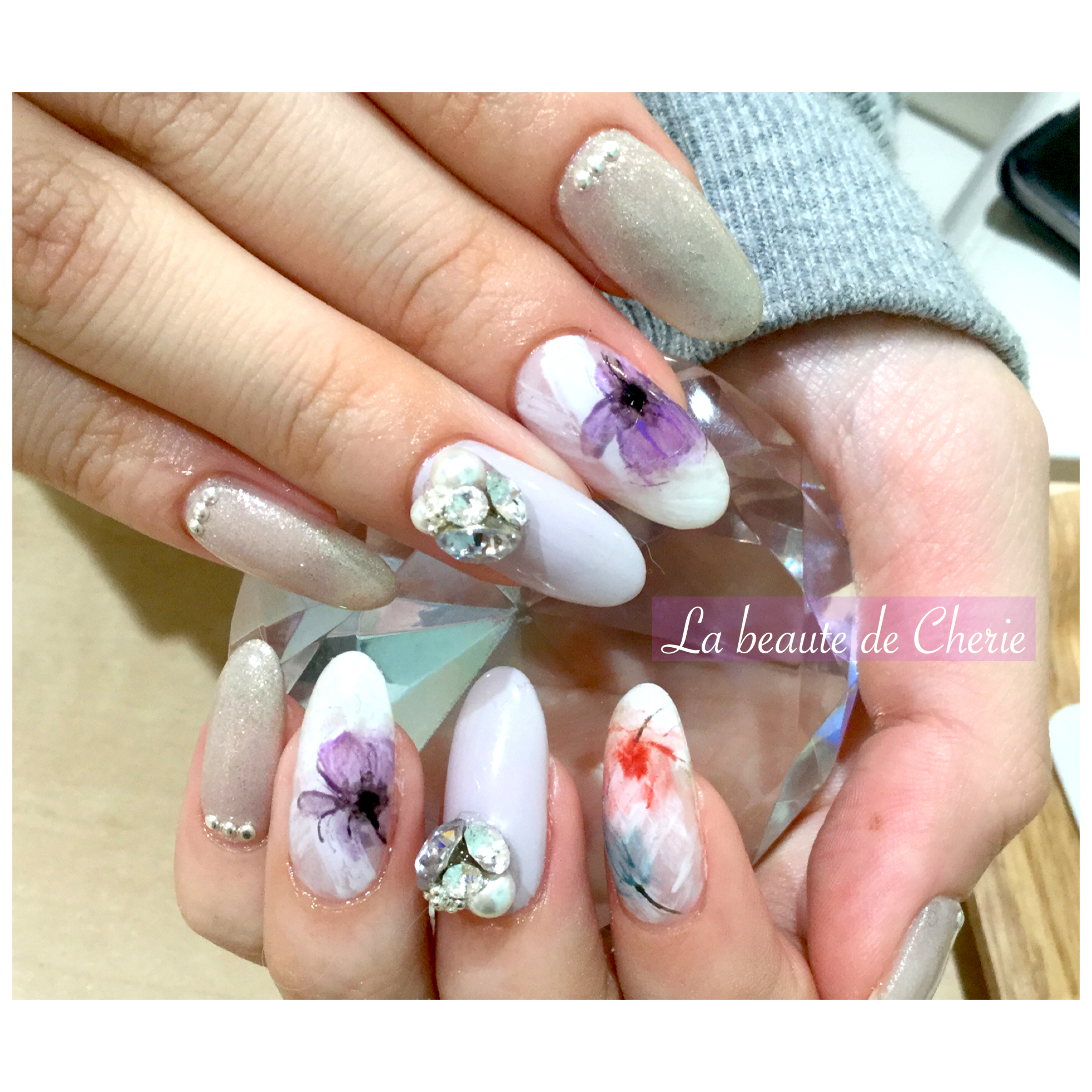 透け感のあるフラワーが涼しげです♪ 人気のストーンものせました^^!