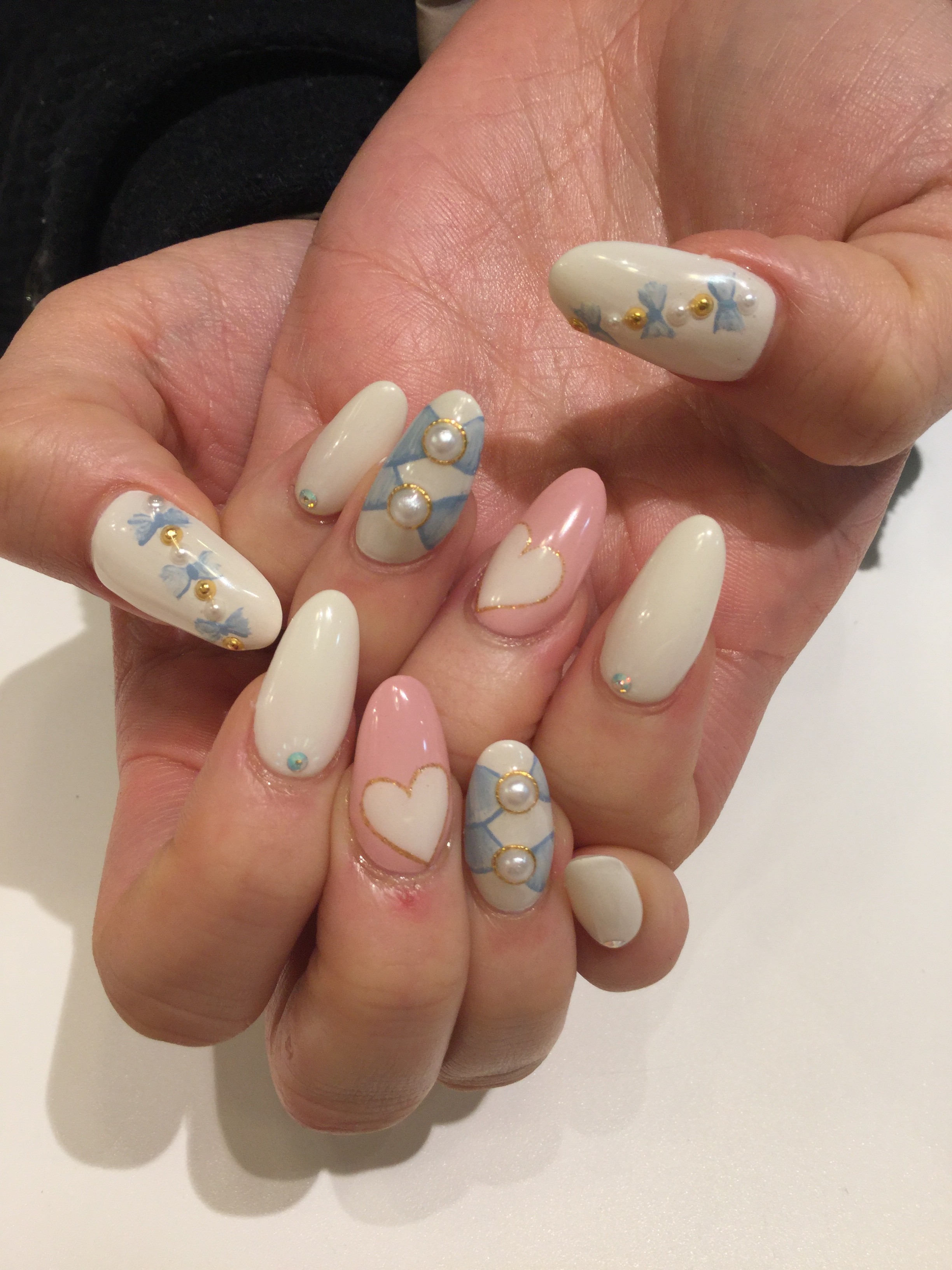 リボンとハートで女の子の好きが詰まったネイルになりました(^-^)